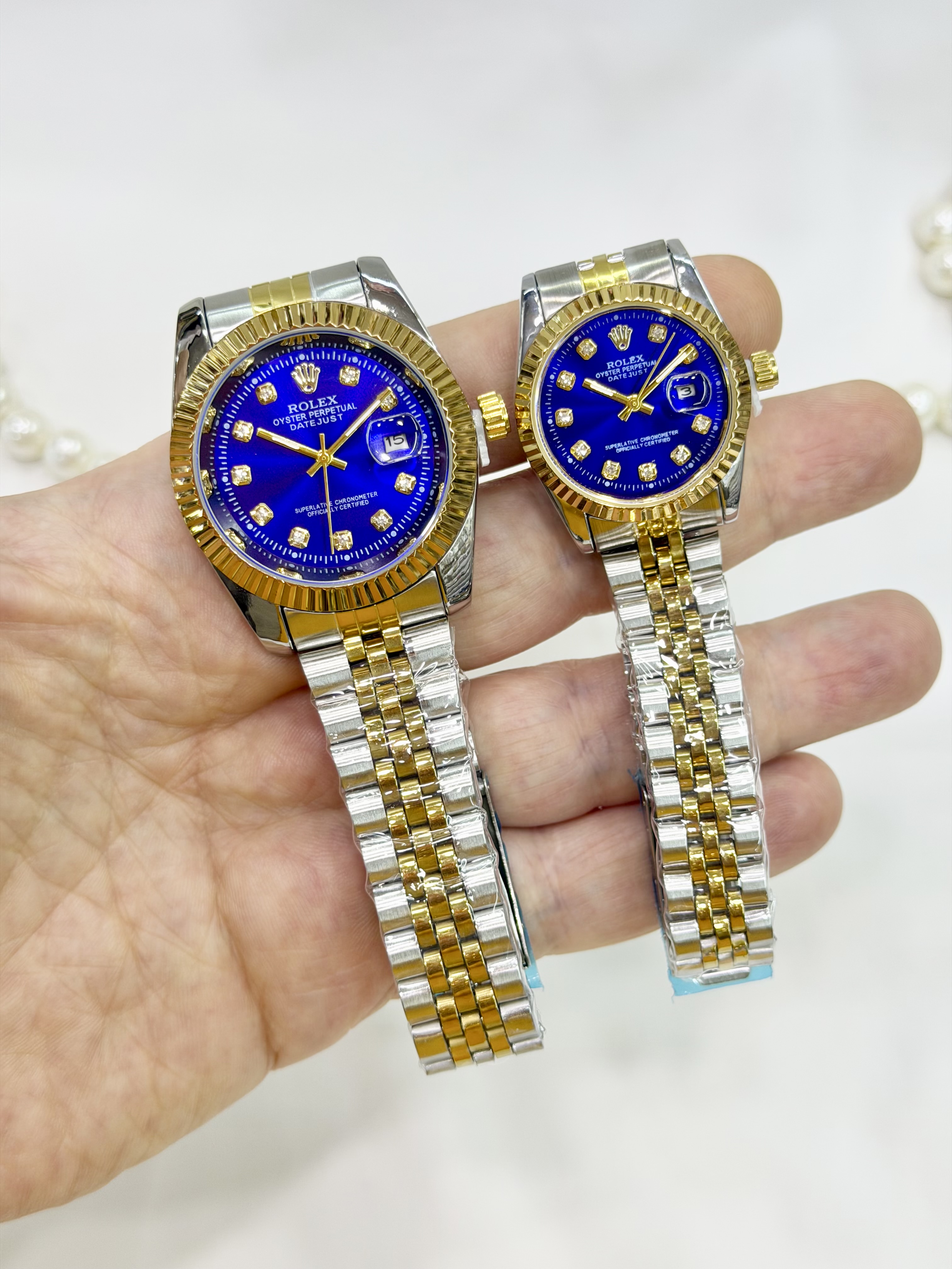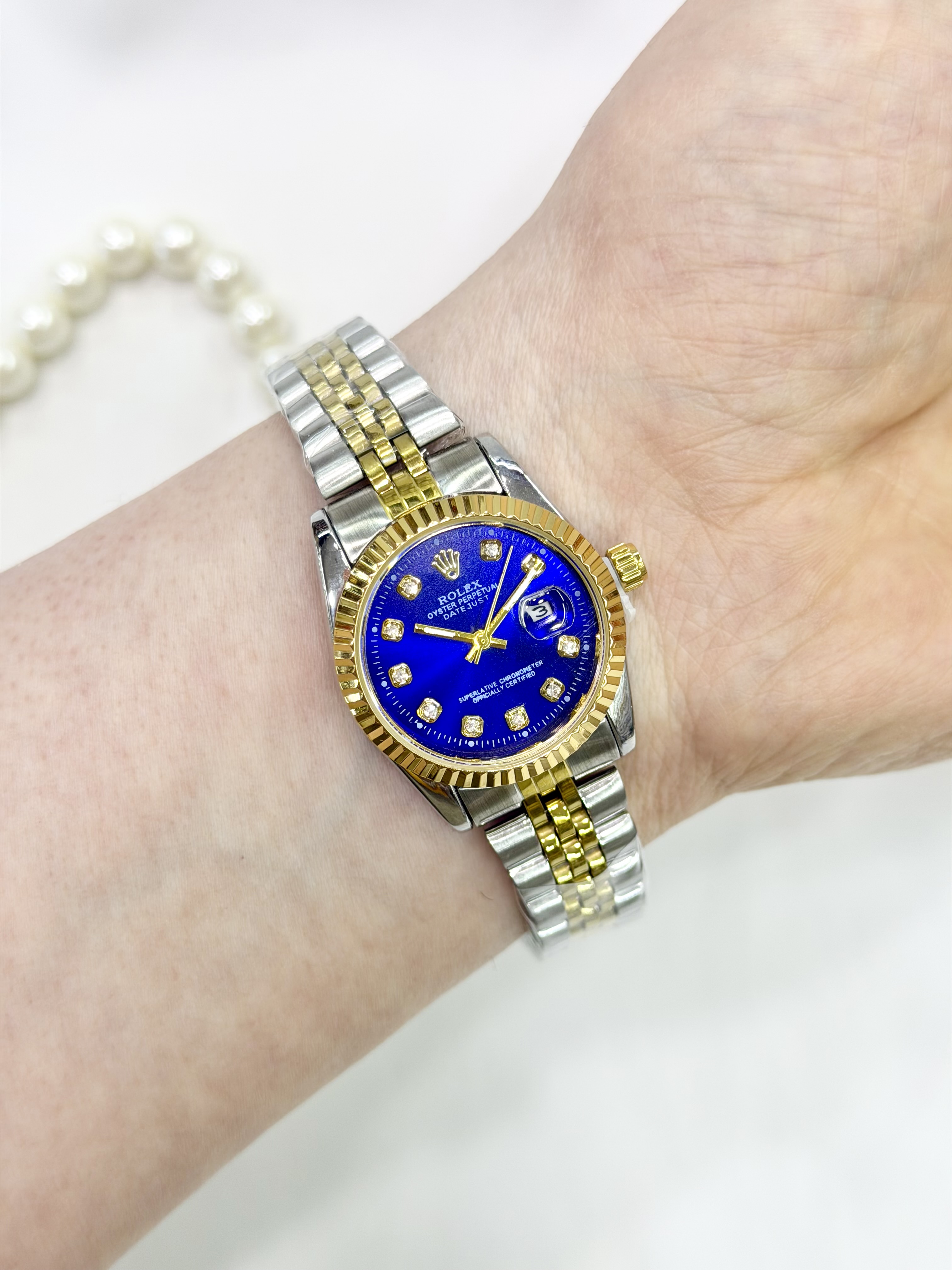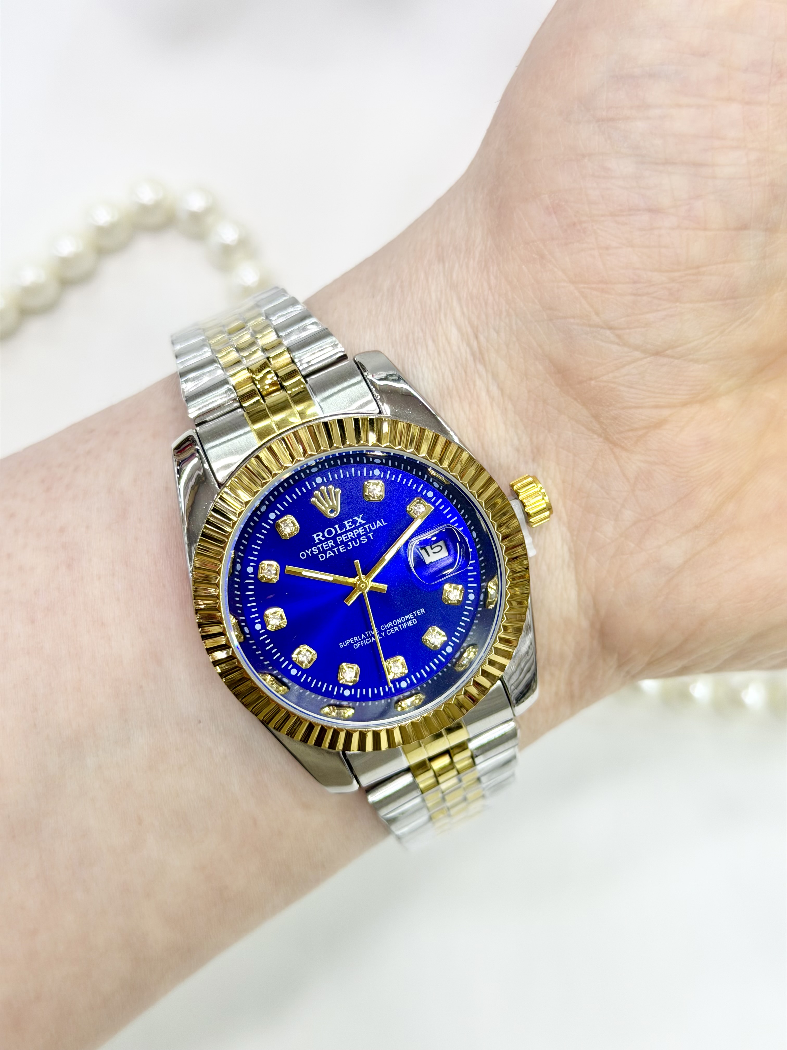 ساعت رولکس دیتجاست اصل مردانه استیل نقره ای طلایی با صفحه آبی